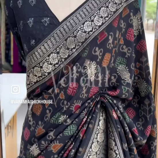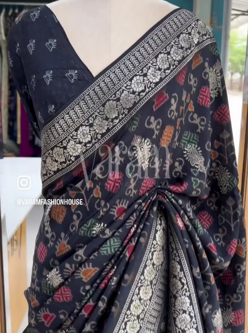 Black Ikkat - Muga Crepe Saree