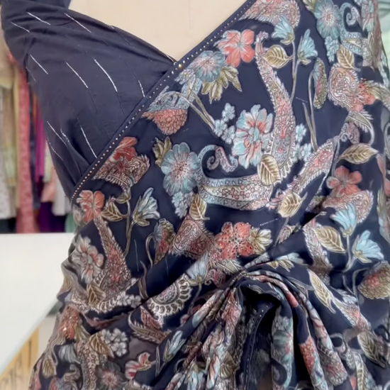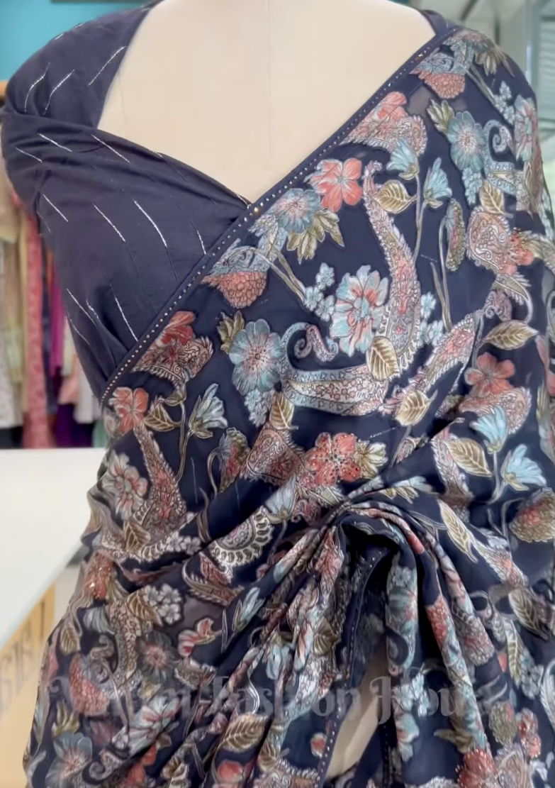 A perfect blend of elegance and charm, this Brasso silk saree features delicate floral patterns that add a touch of timeless grace. The soft, sheer texture of Brasso silk drapes beautifully, making it ideal for both festive occasions and graceful everyday wear. Lightweight yet luxurious—this saree is your floral fantasy, brought to life.