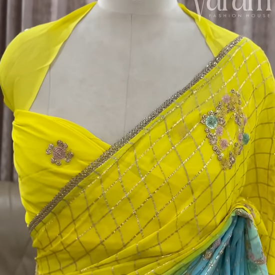 Premium Georgette Saree with Zari Checks & Artistic Threadwork